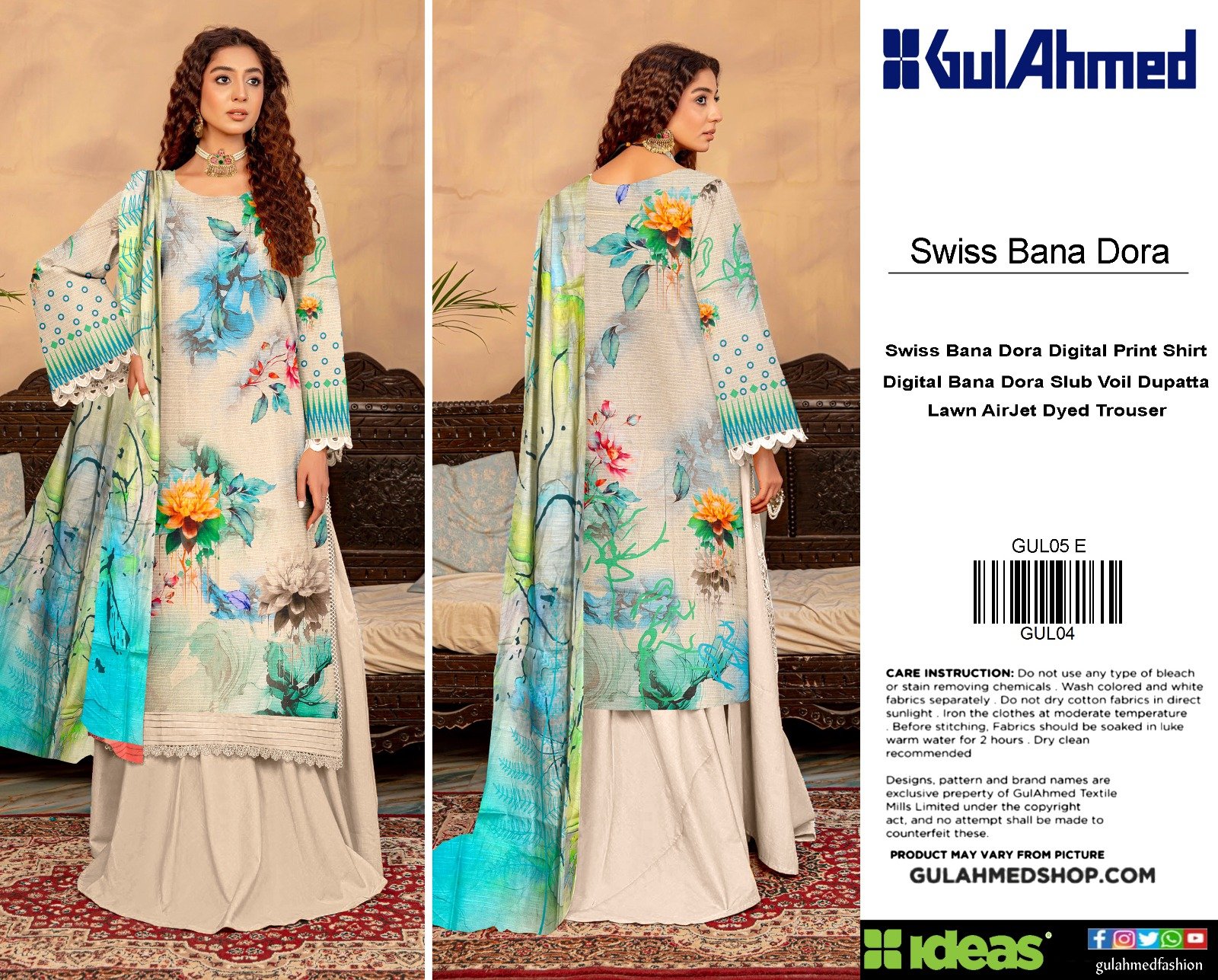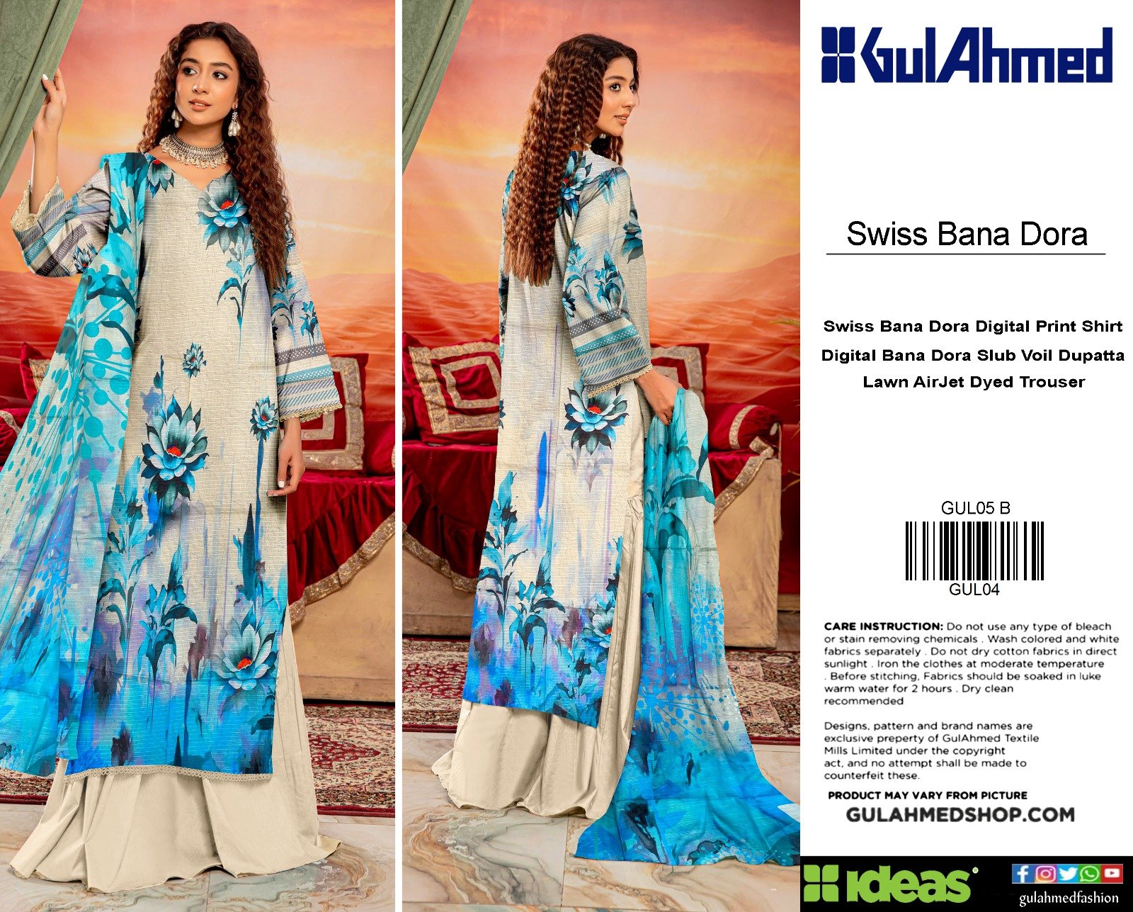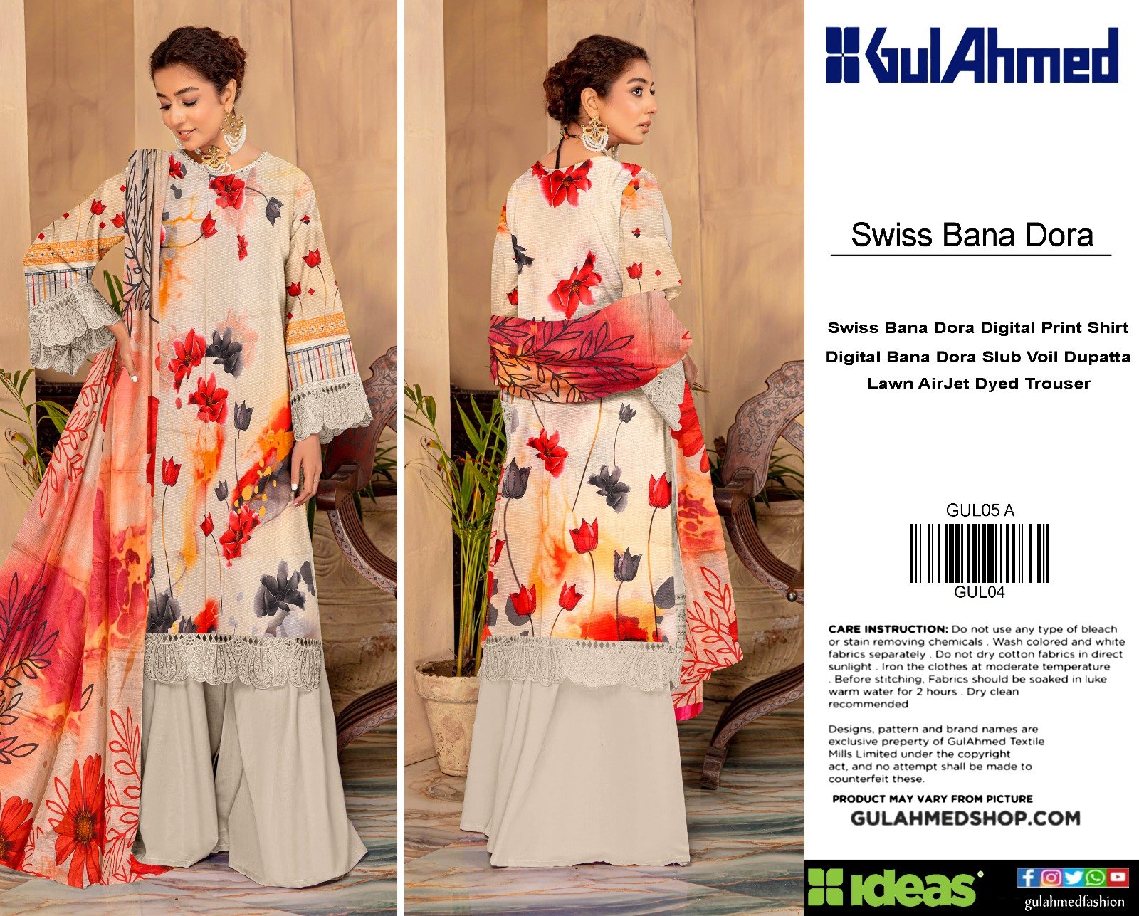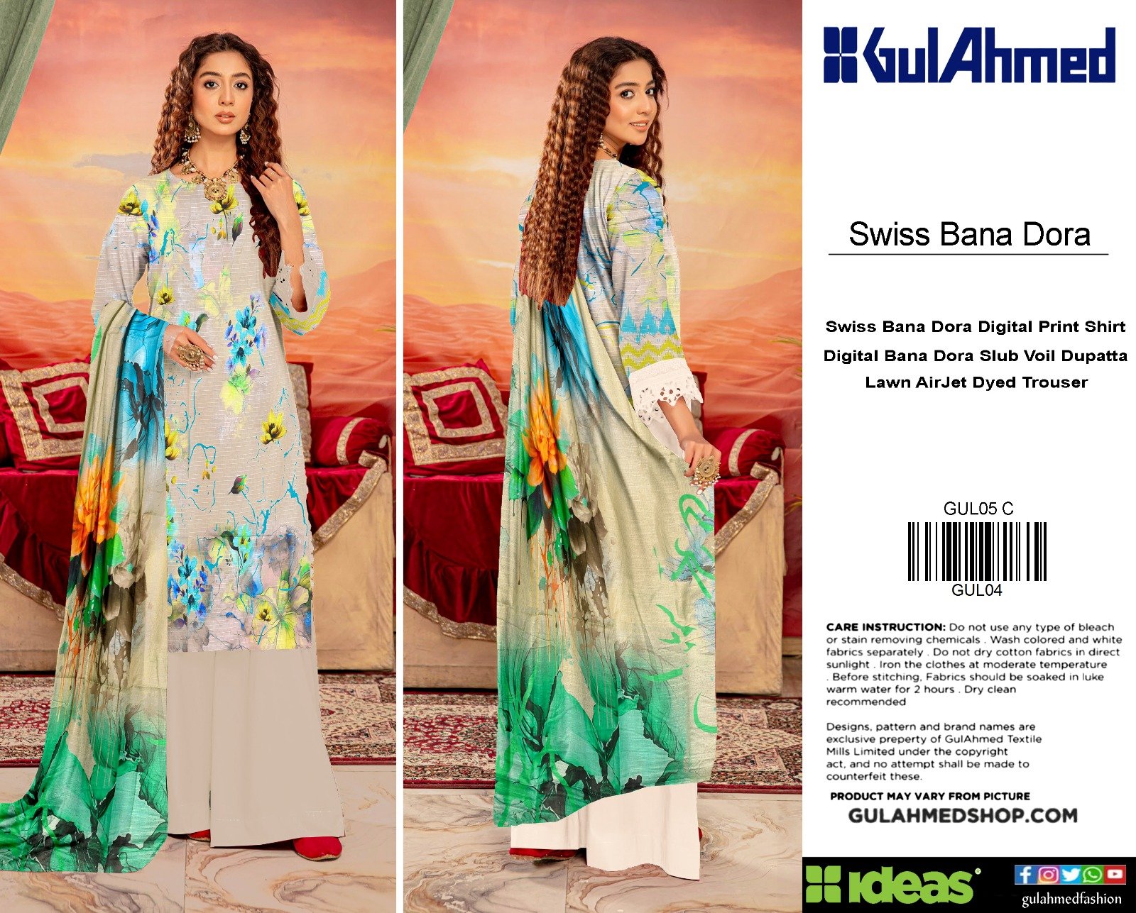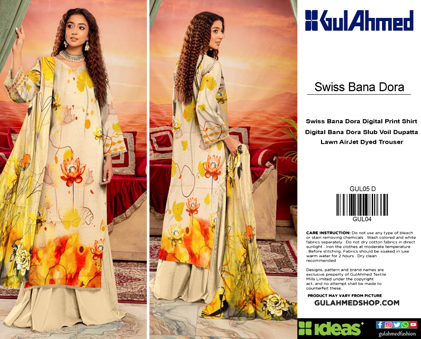 “Gul Ahmed” Swiss Bana Dora Digital With Digital Swiss Voil Dupatta {Box 5 Suits}