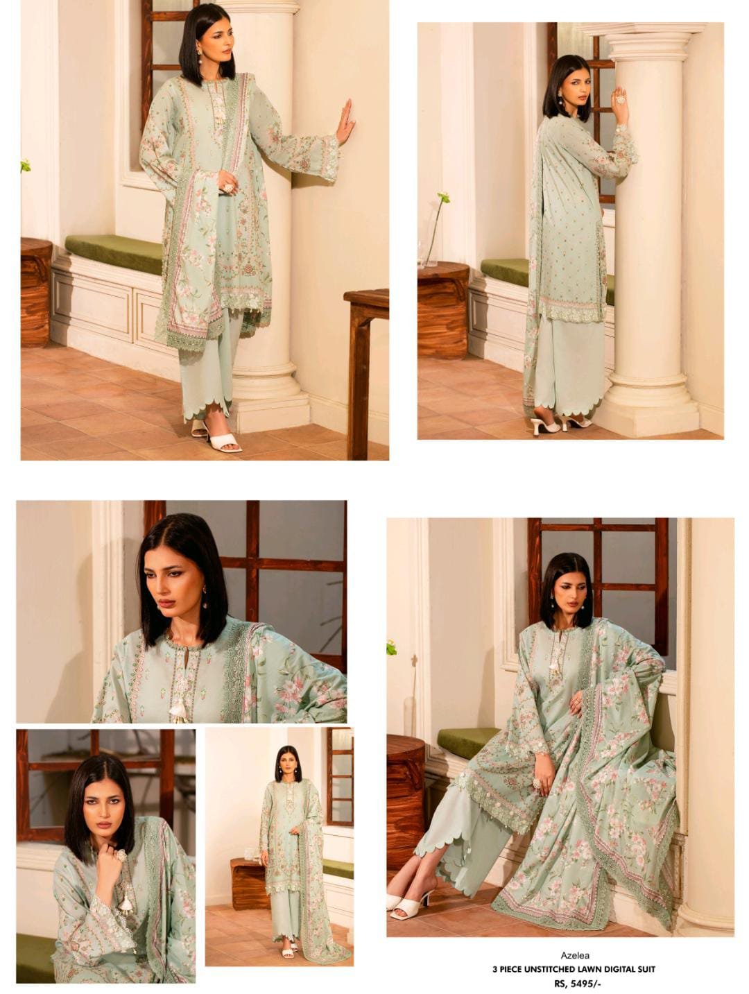 “NURA SIGNATURE”3pc Lawn With Chiffon Dupatta with Patches (BAROQUE) (BOX 4 SUITS)