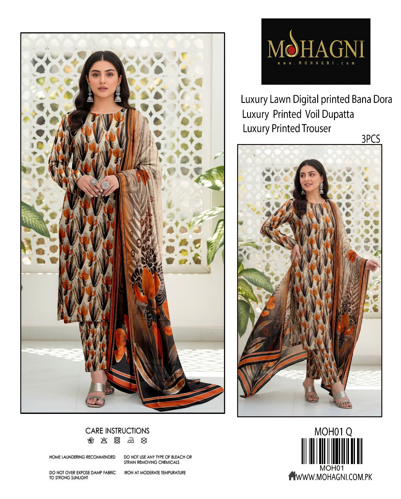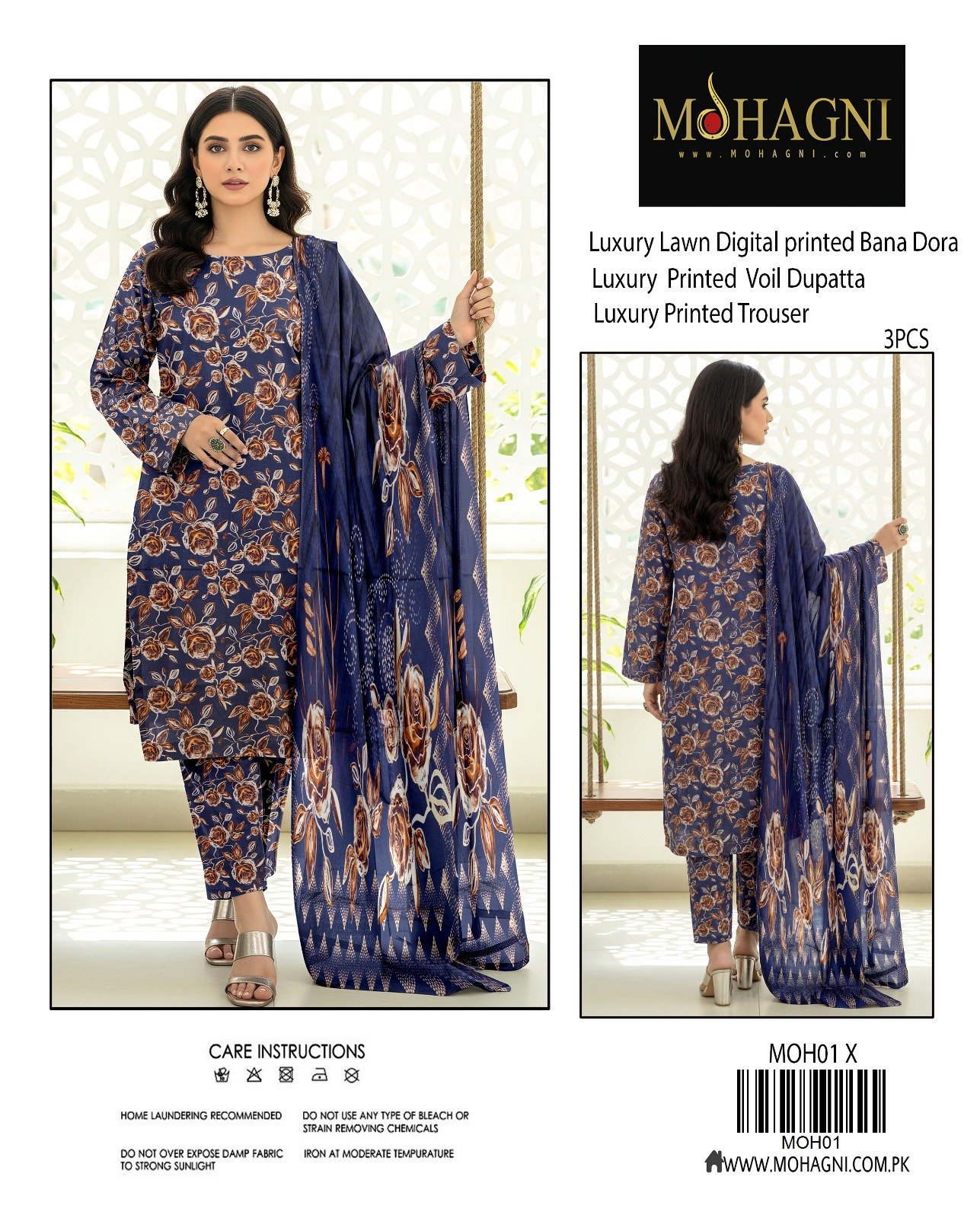 “MOHAGINI” Digital Luxury Printed Bana Dora Lawn With Luxury Printed Voil Dupatta