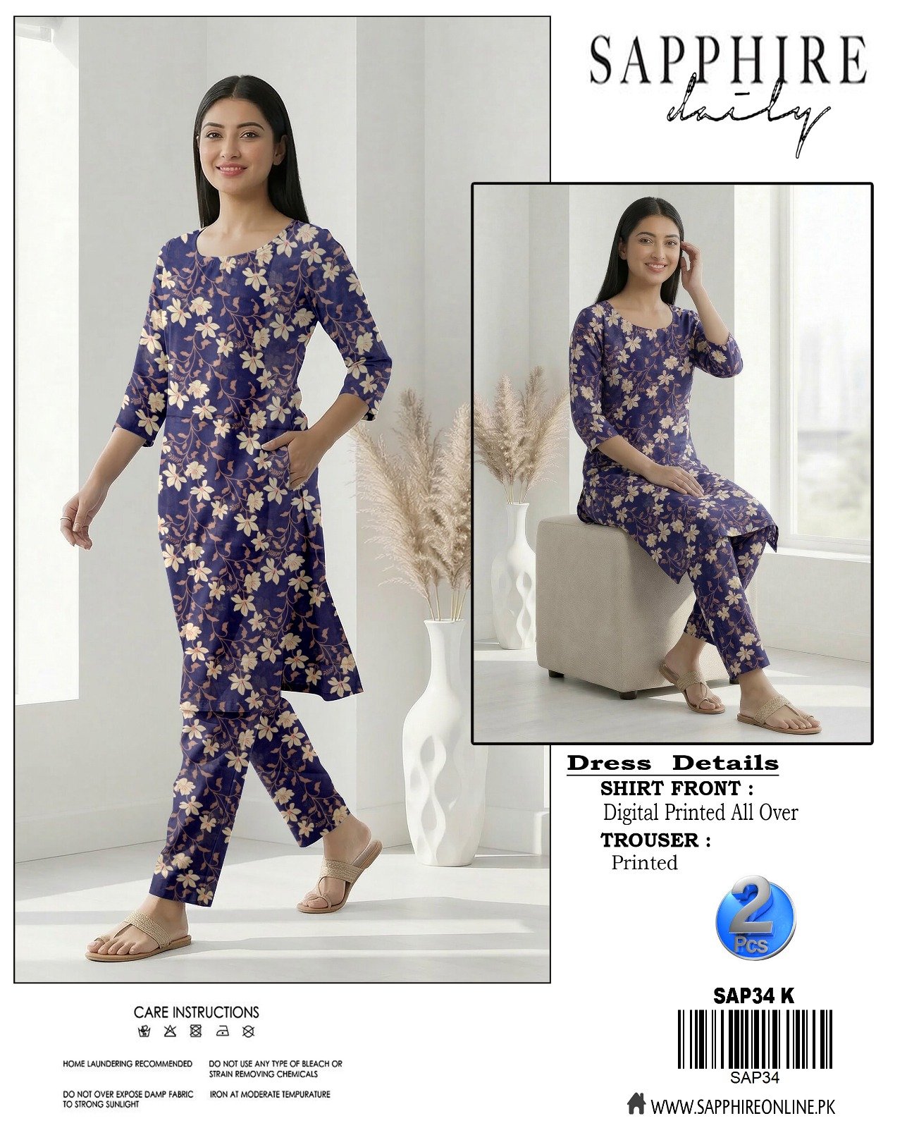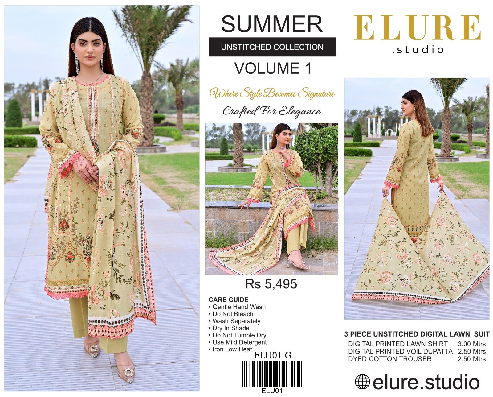 “ELURE”Digital Printed Lawn All Over 2pc