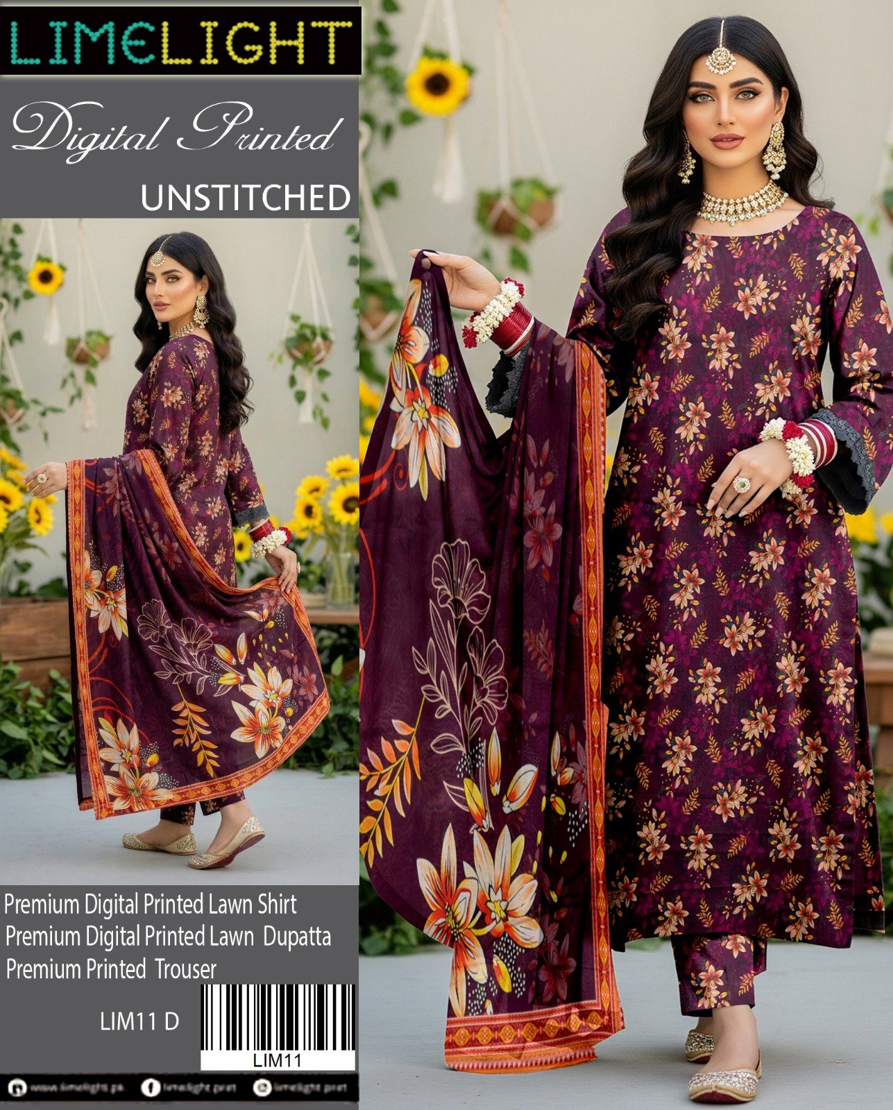 “ELURE” Digital Printed Lawn With Voil Printed Dupatta {Box 10 Suits}