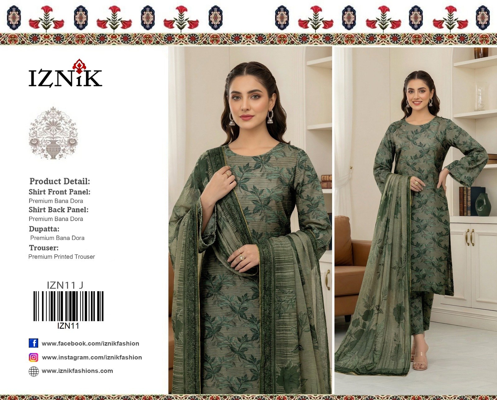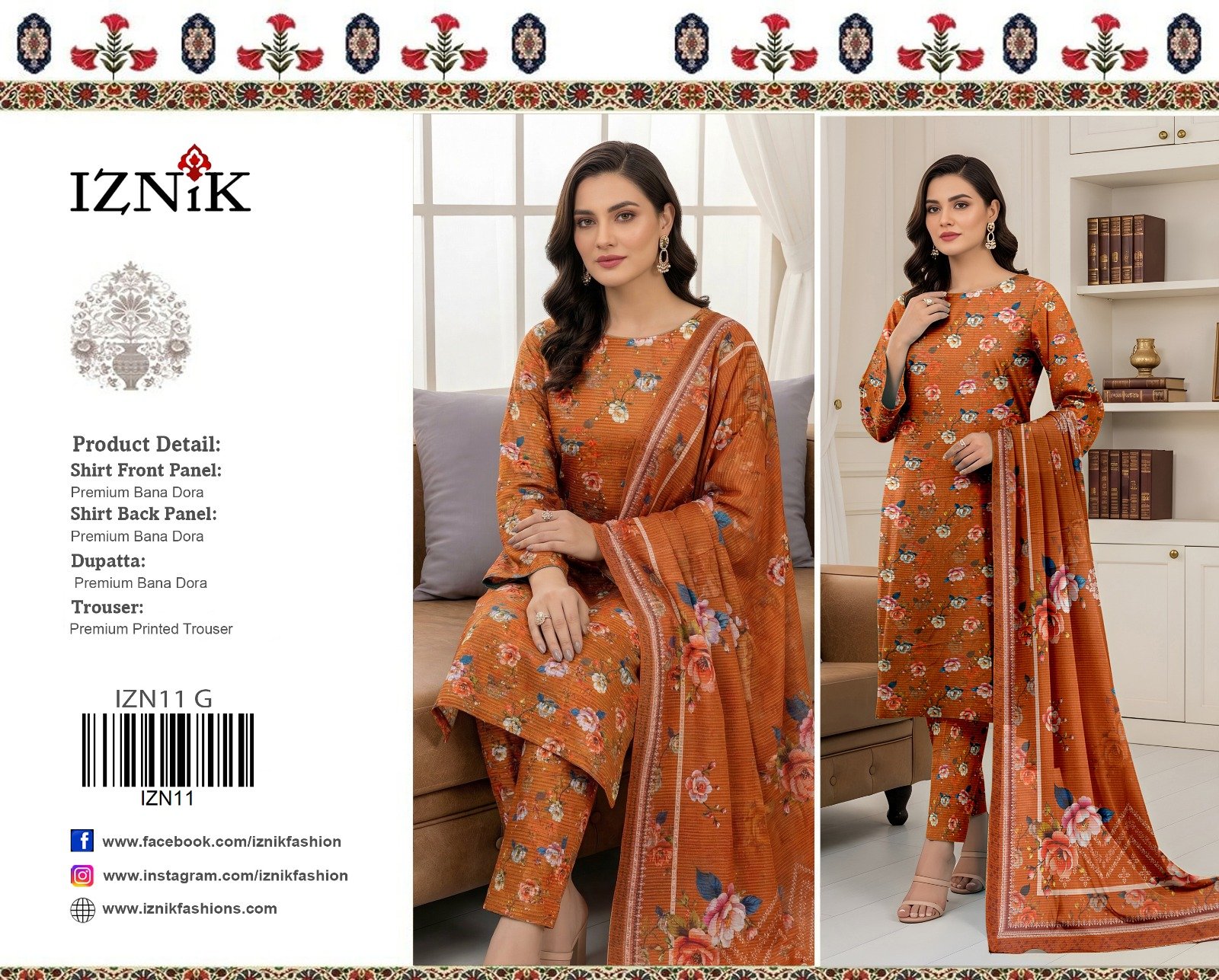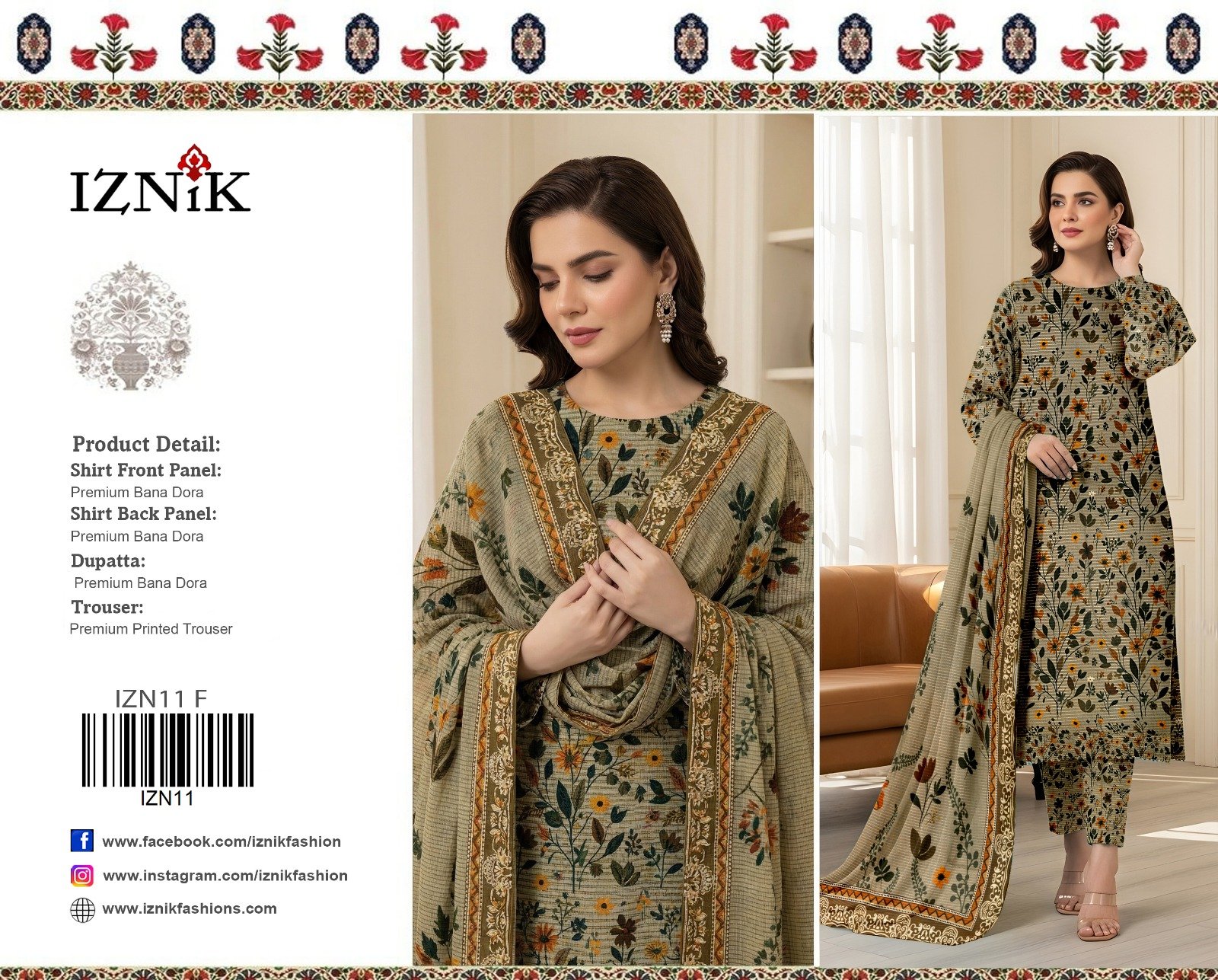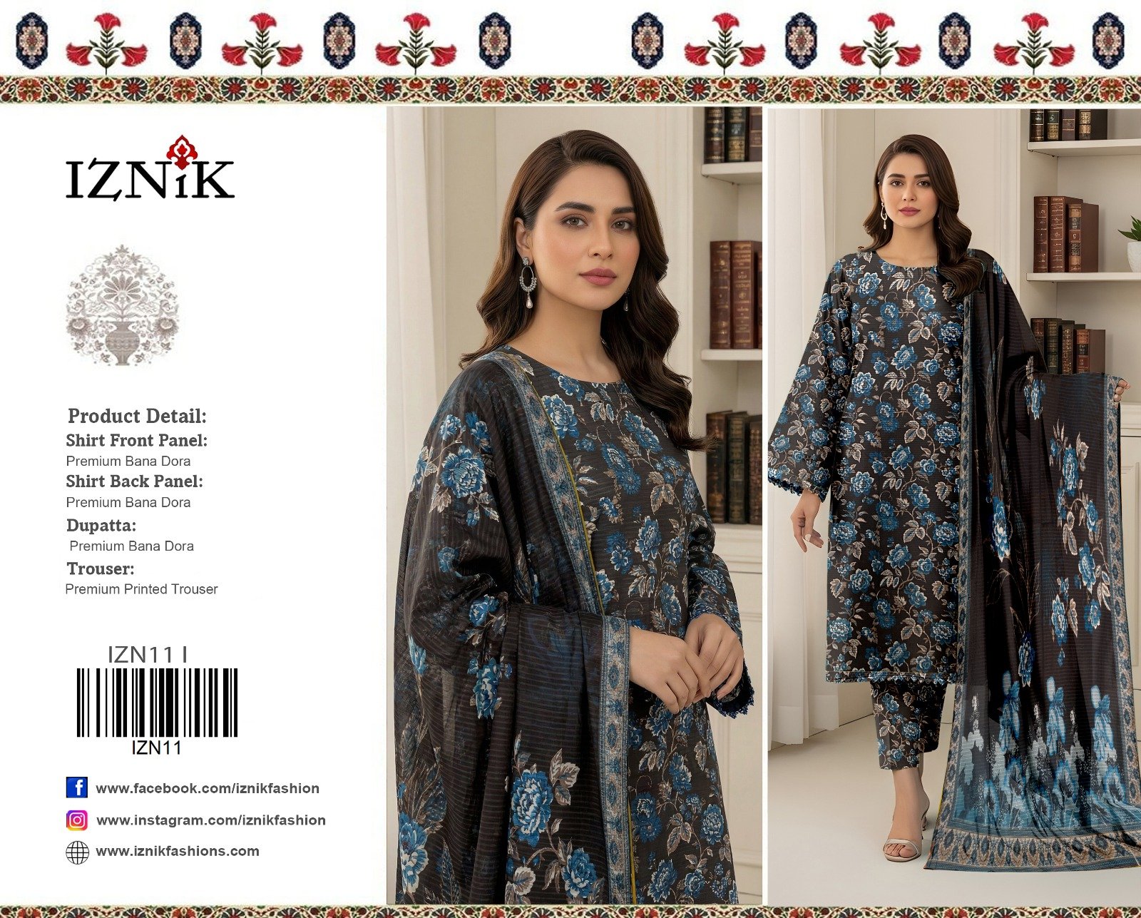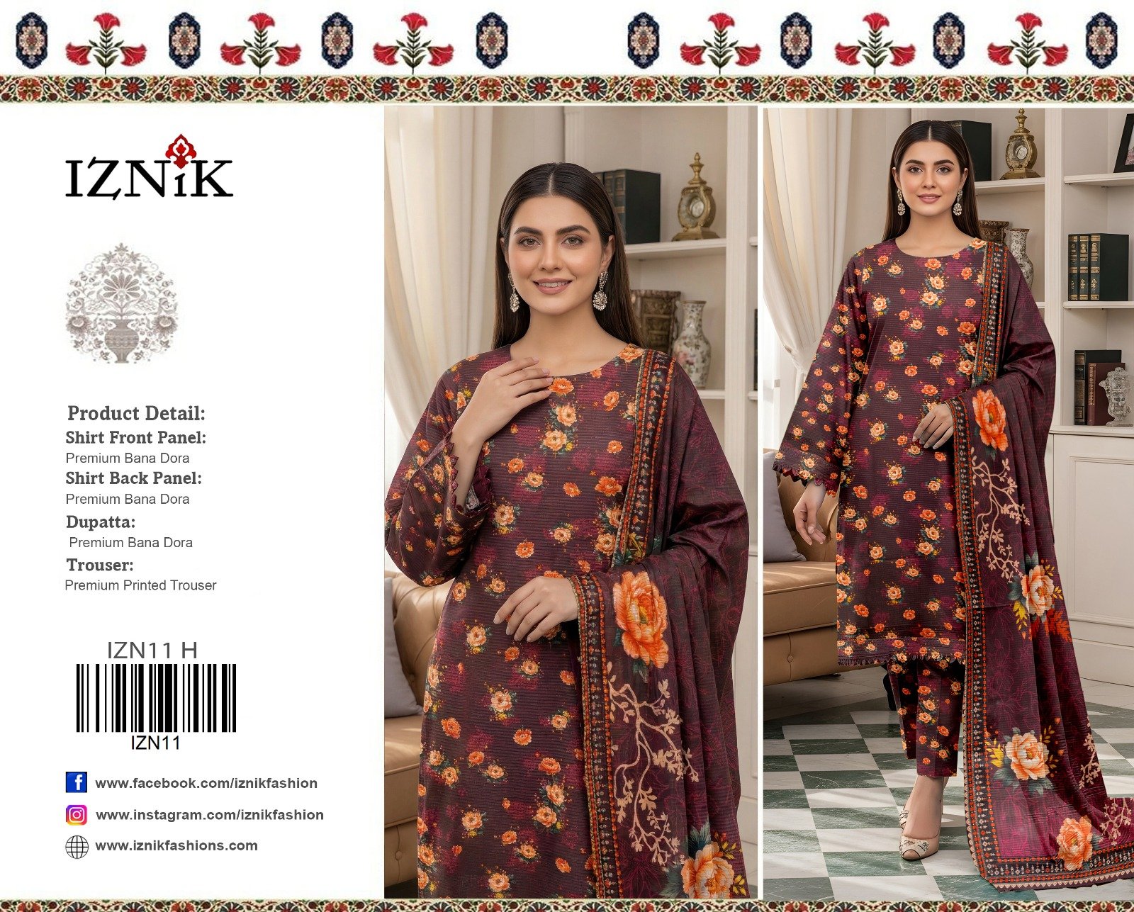 “Khaadi” Swiss Bana Dora Digital With Digital Slub Voil Dupatta (Box 5 suits)