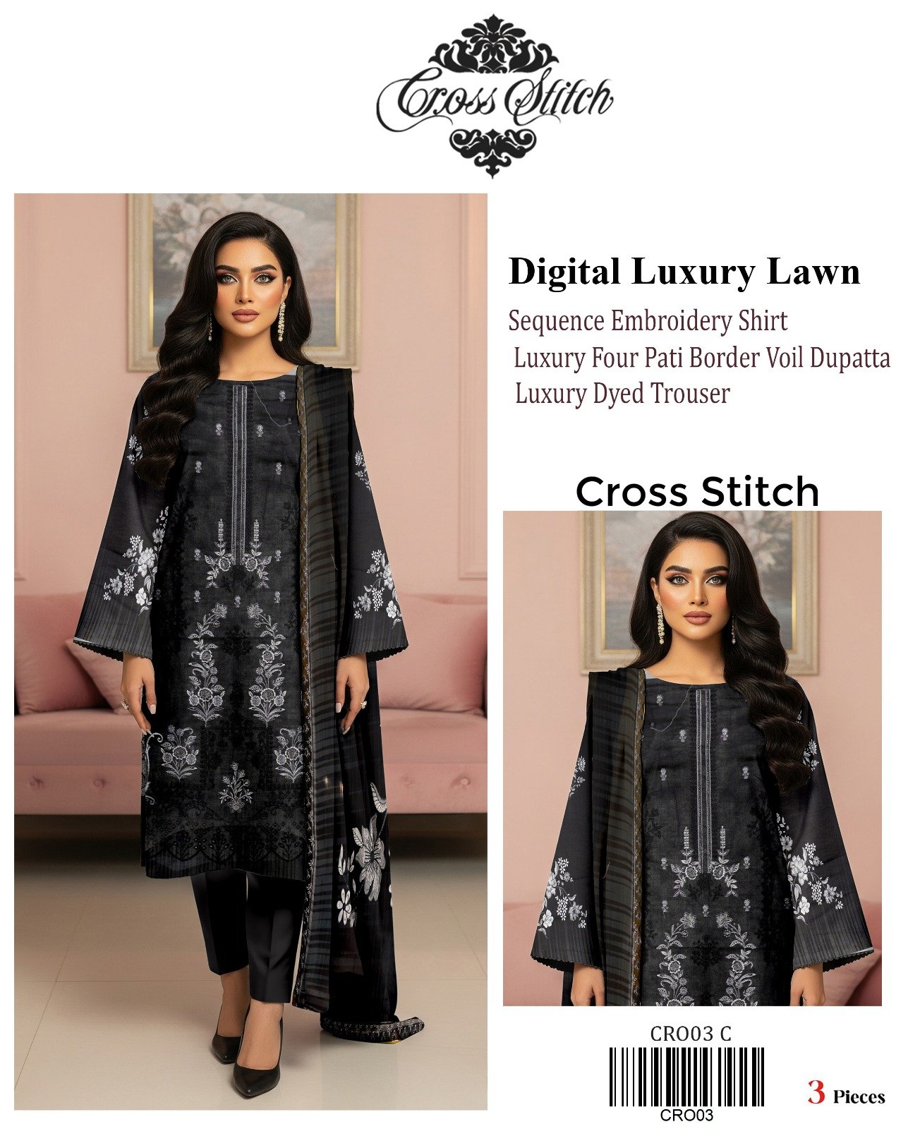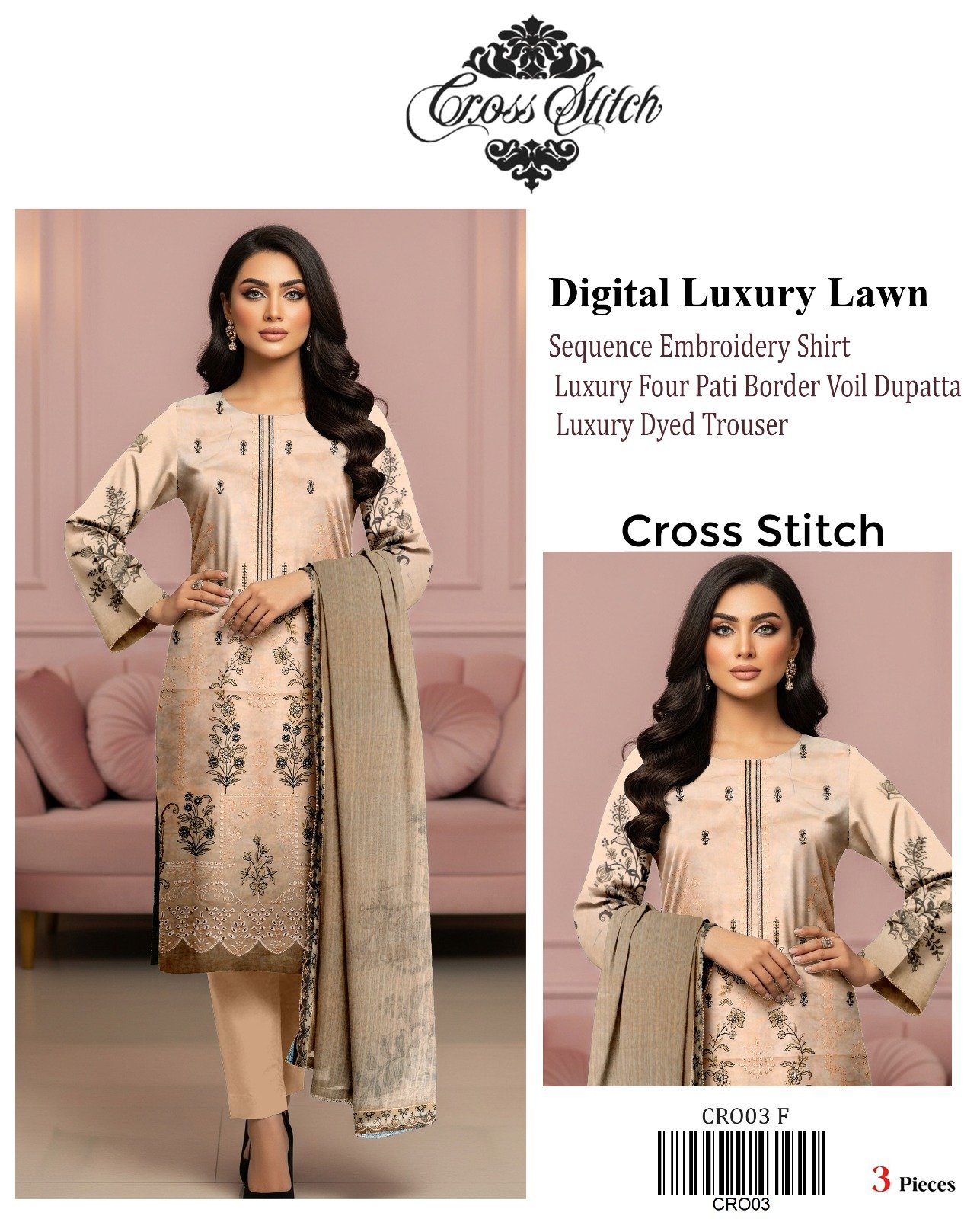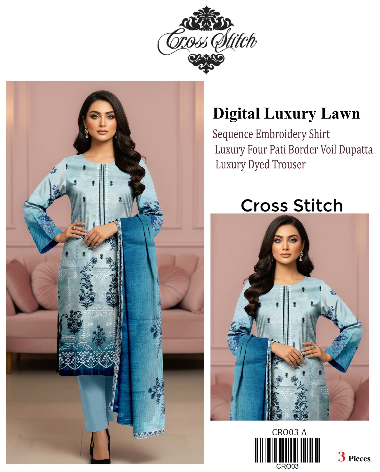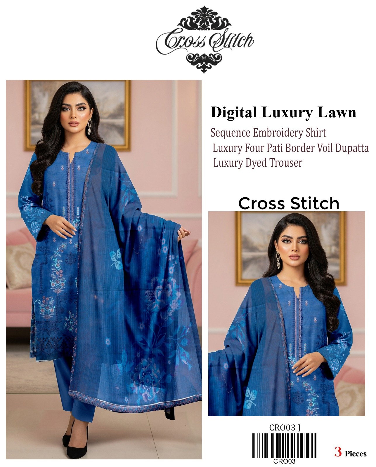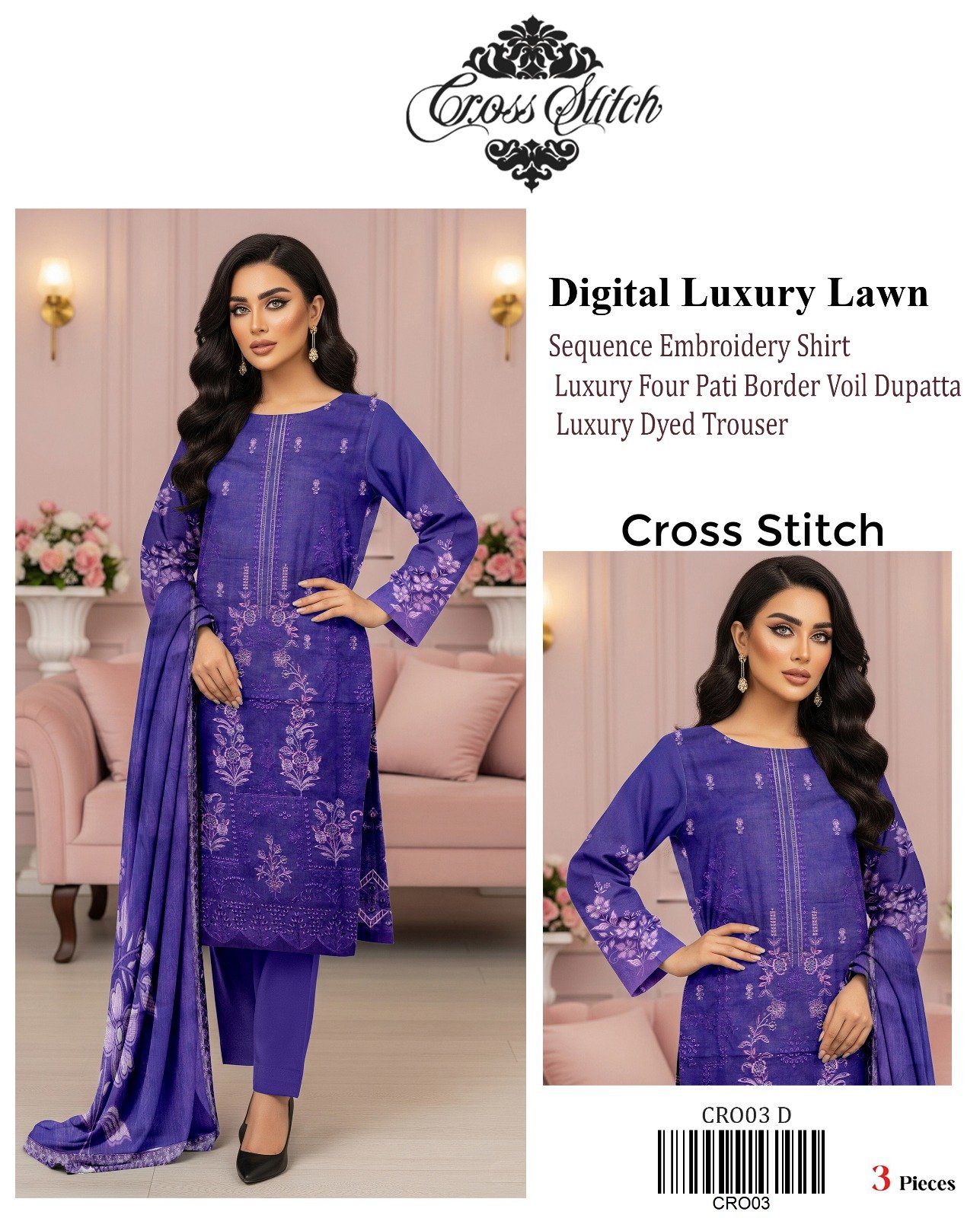 “CROSS STITCH” Digital Luxury Lawn With Seq Emb Shirt With Premium Voil Dupatta