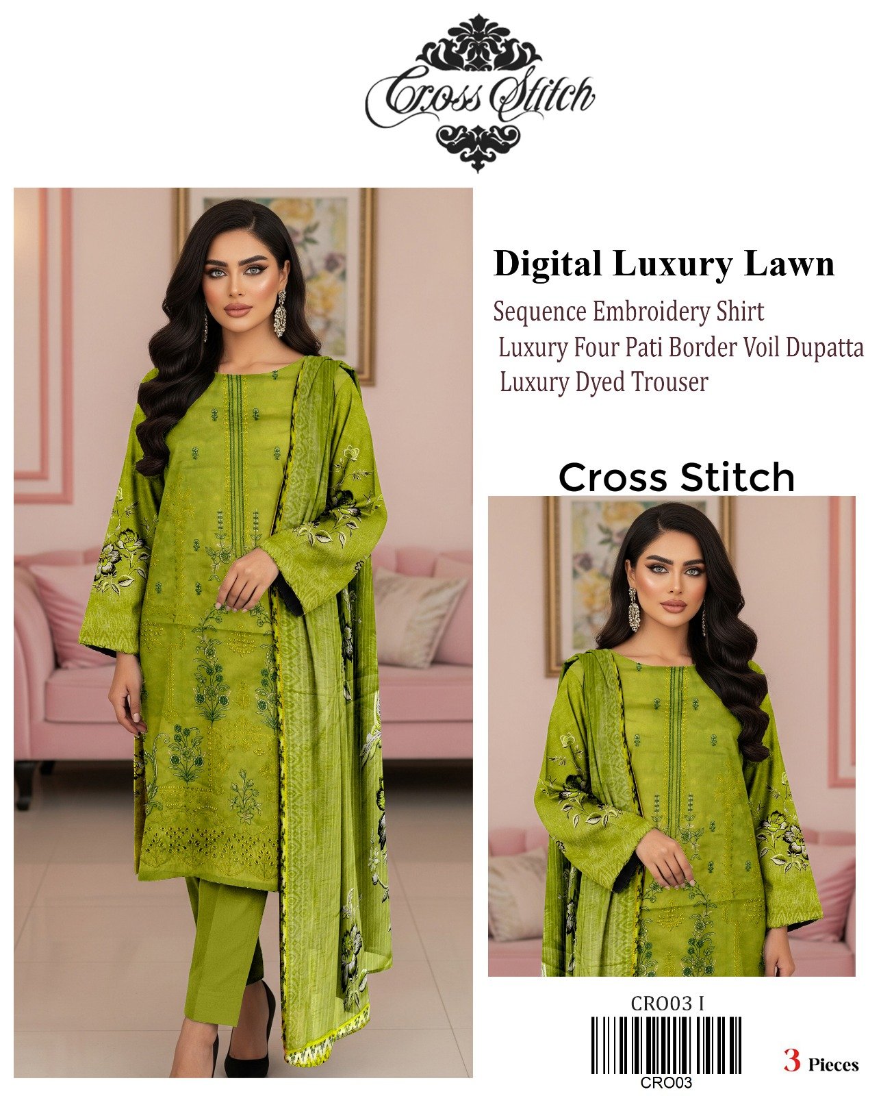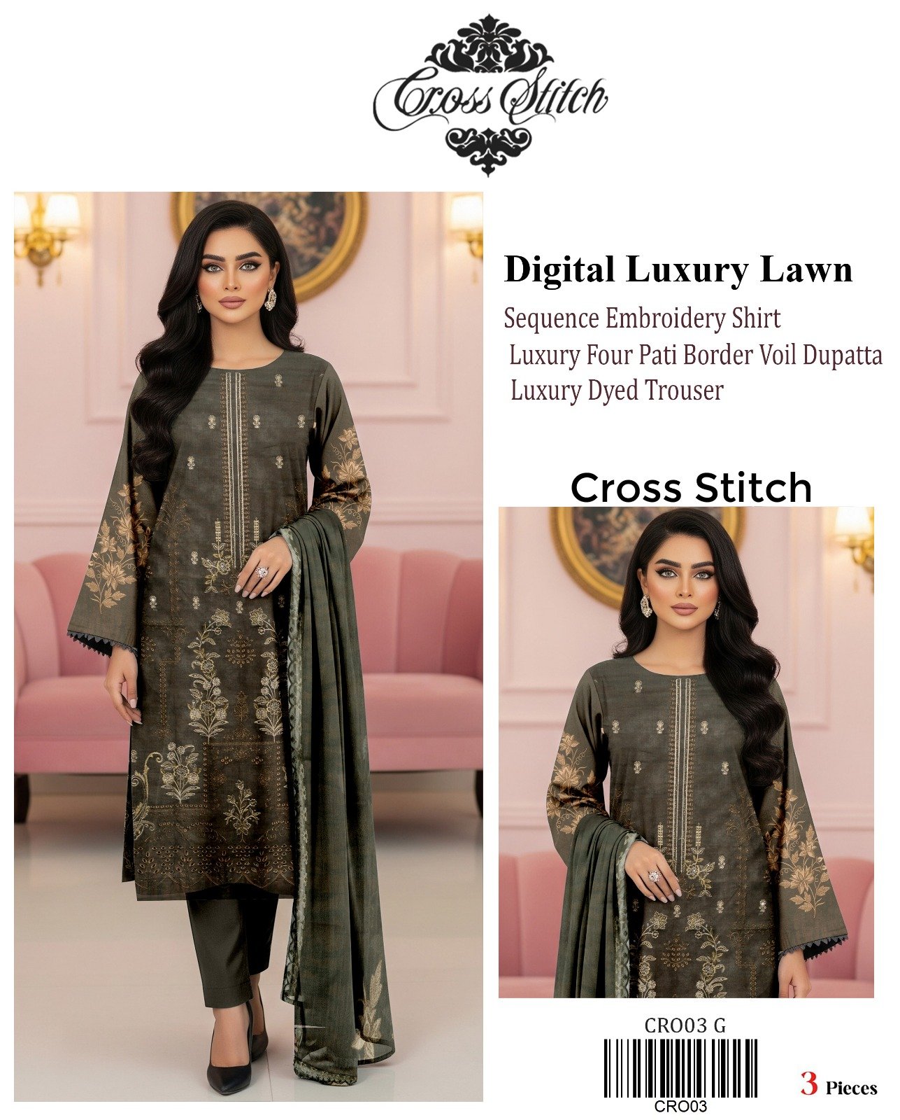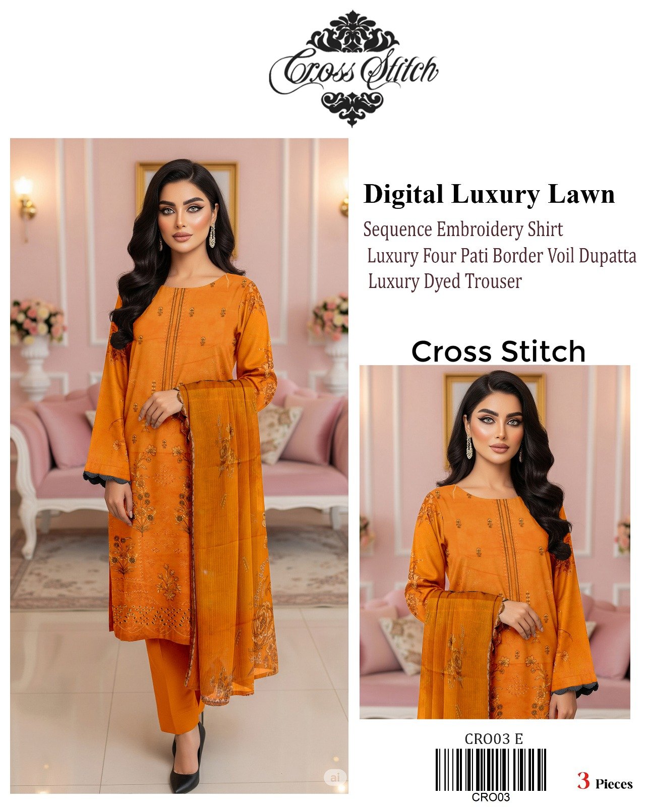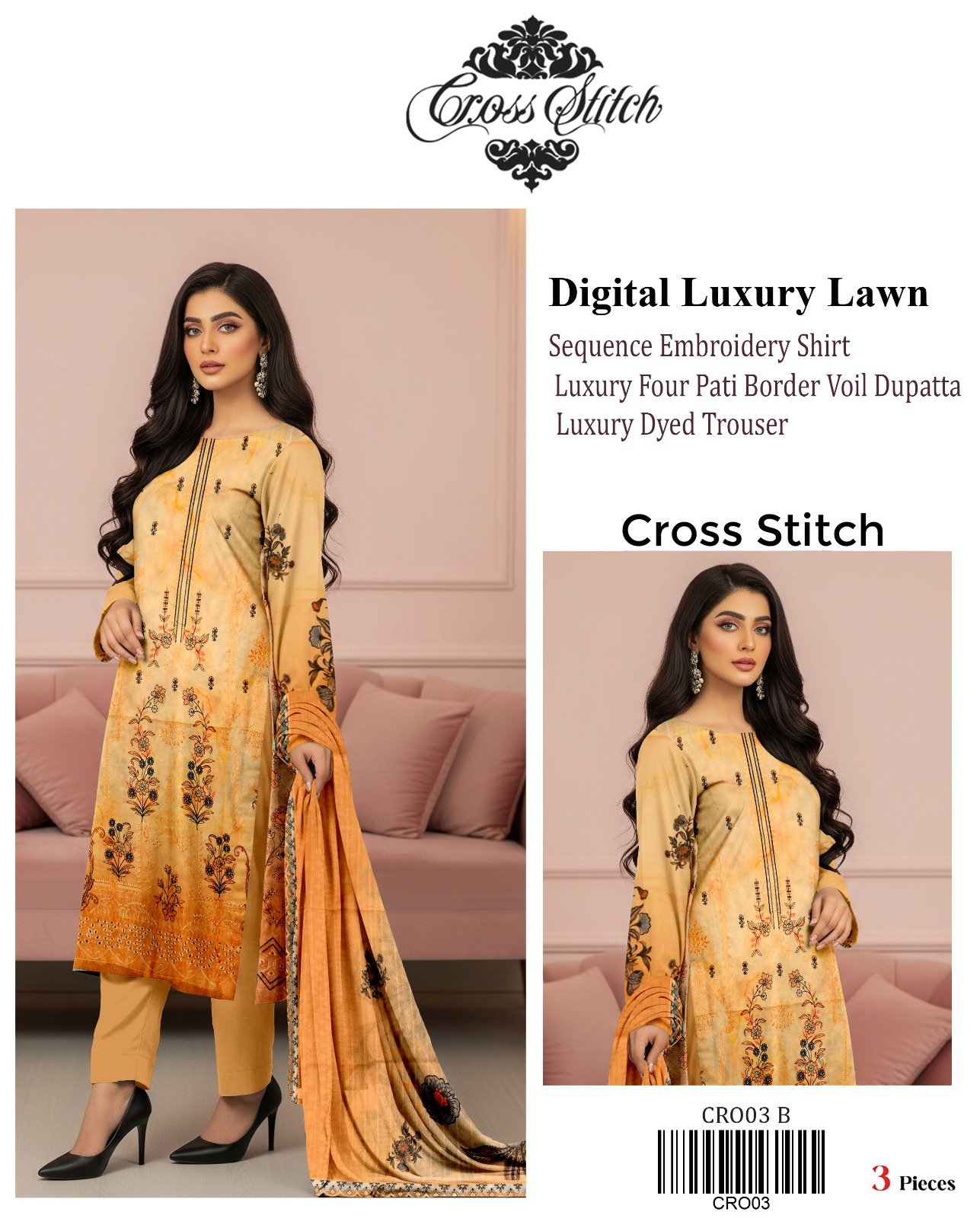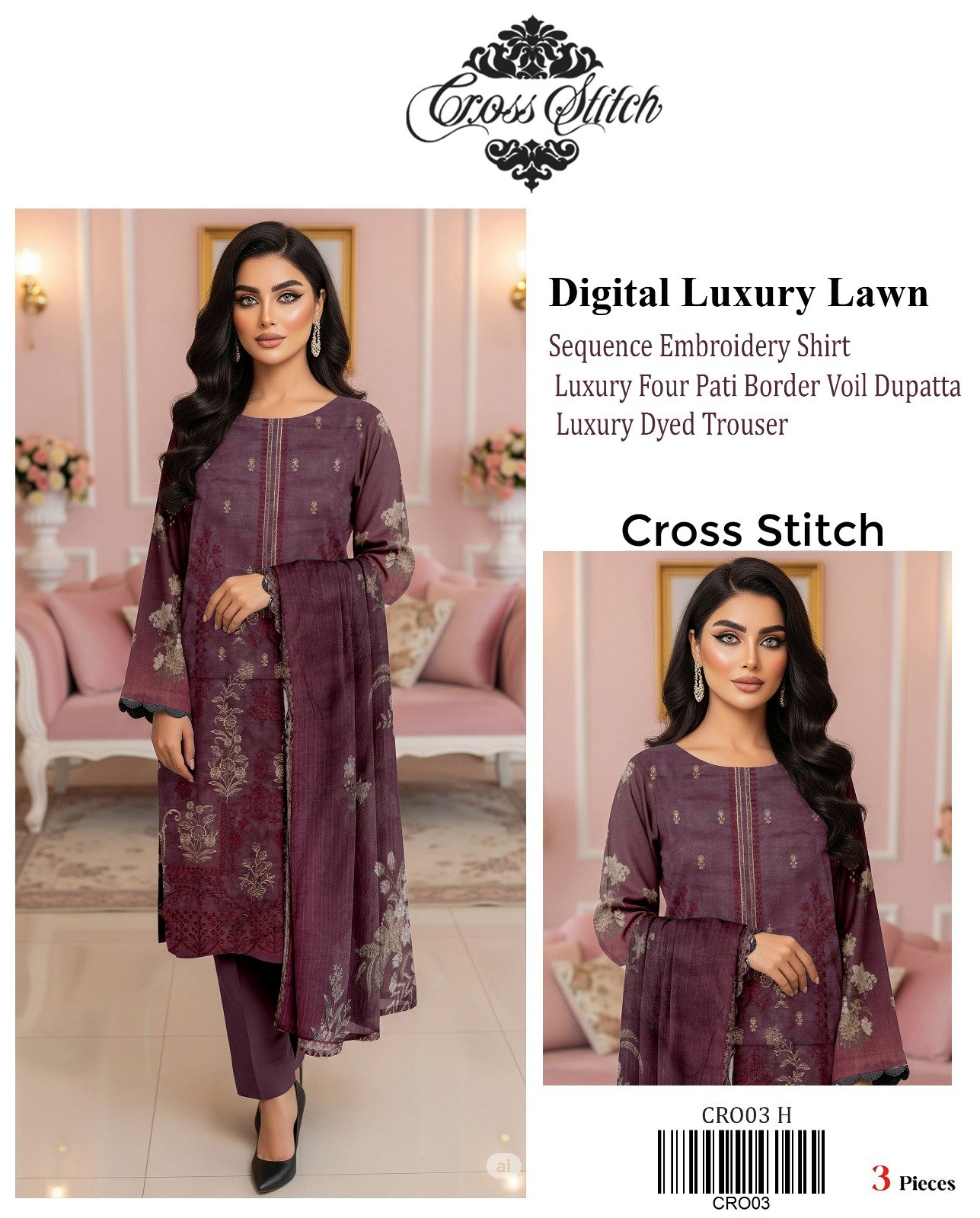 “CROSS STITCH” Digital Luxury Lawn With Seq Emb Shirt With Premium Voil Dupatta
