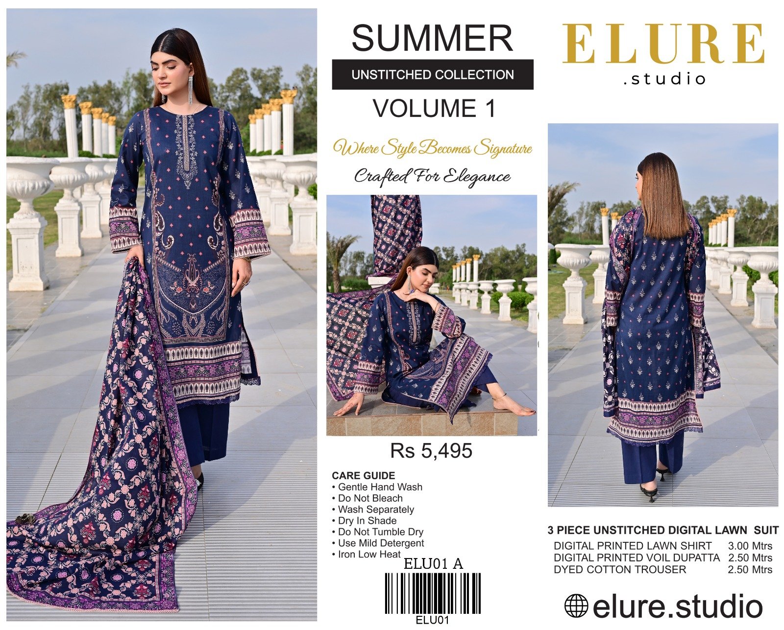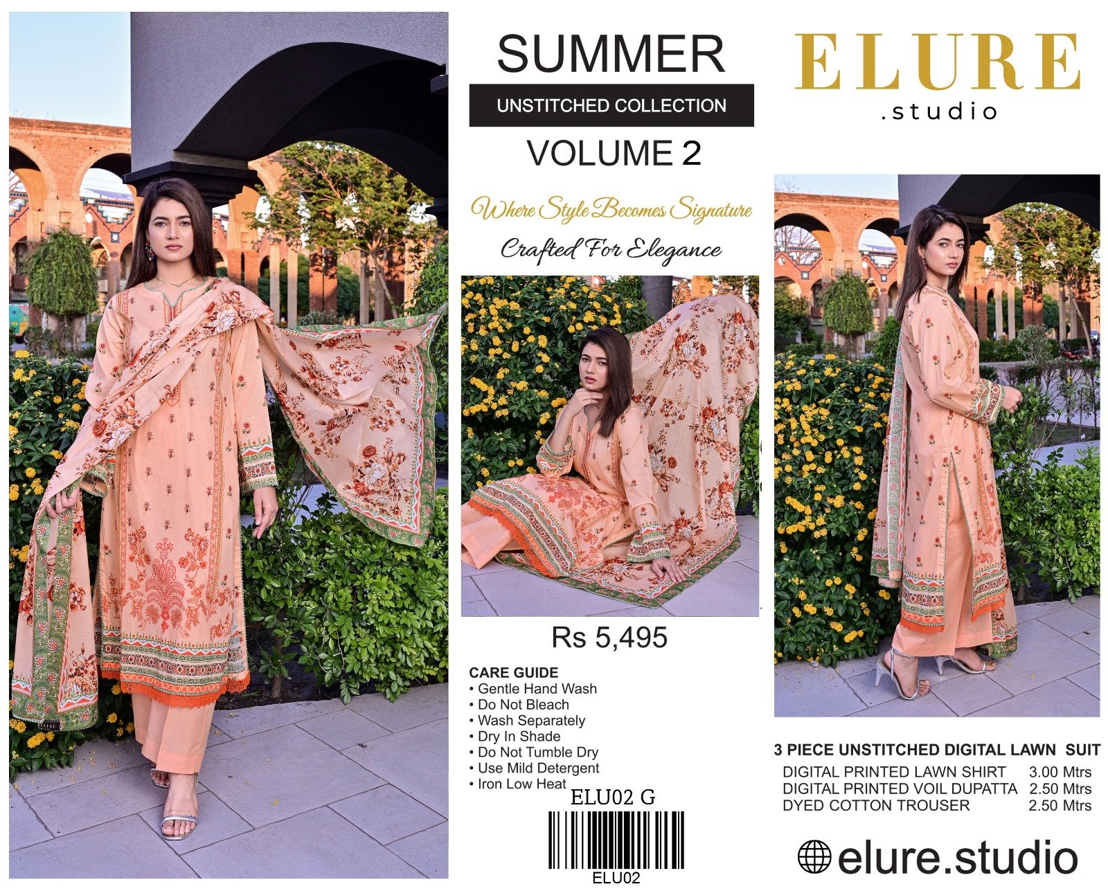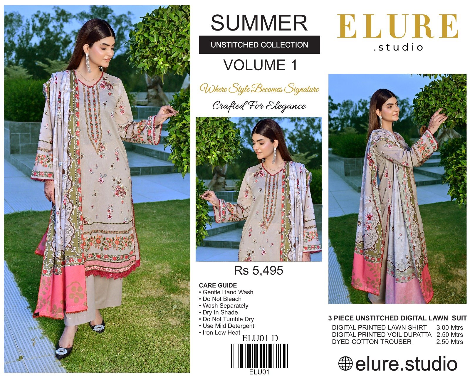 “ELURE” Digital Printed Lawn With Voil Printed Dupatta