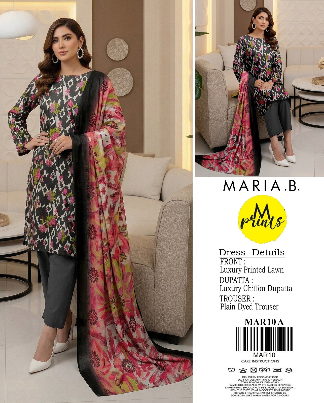 “MARIA.B”Luxury Lawn Printed All over With Chiffon Dupatta {Box 5 Suits}