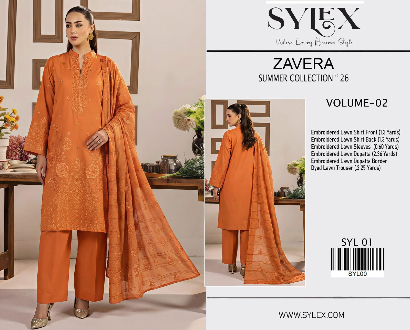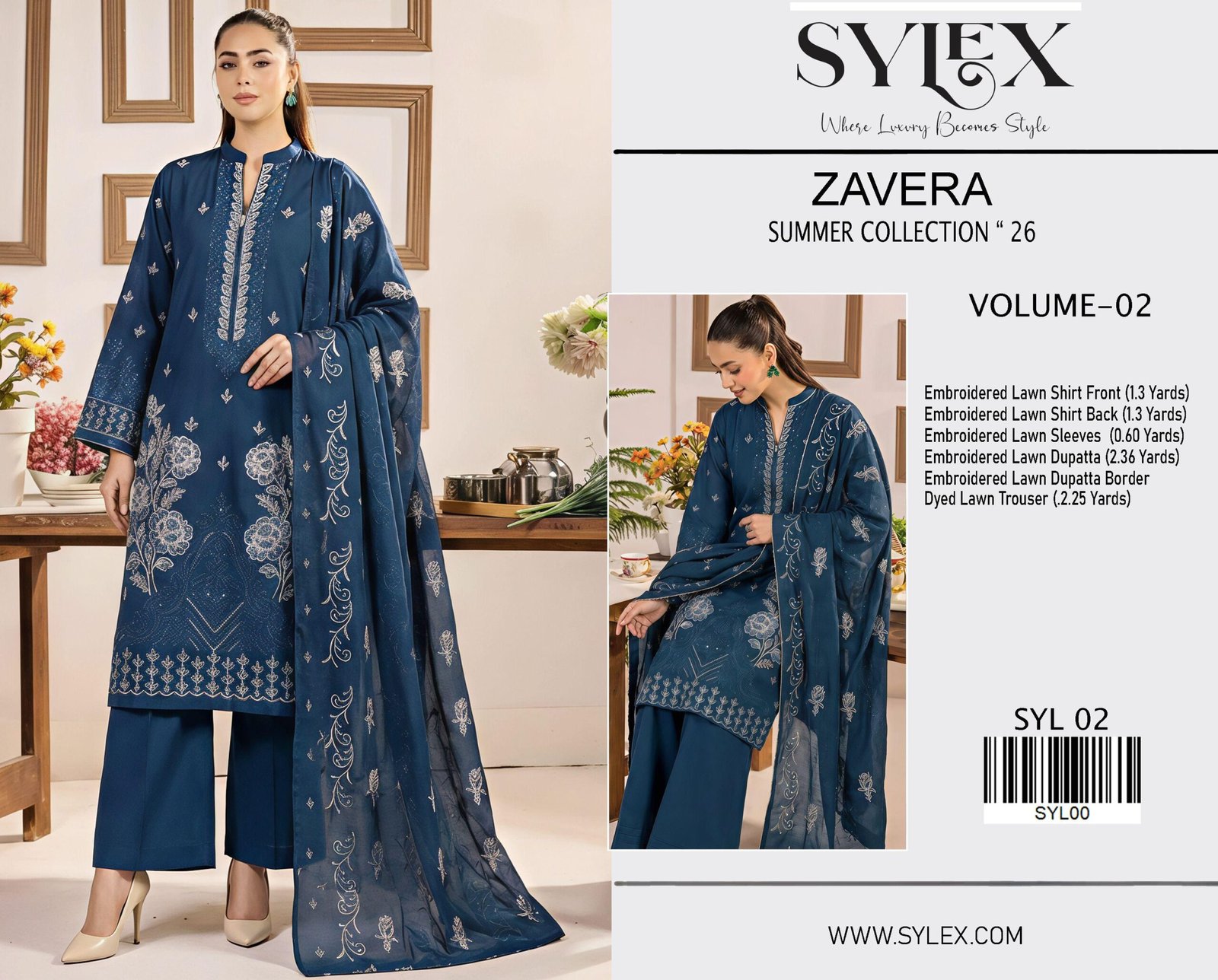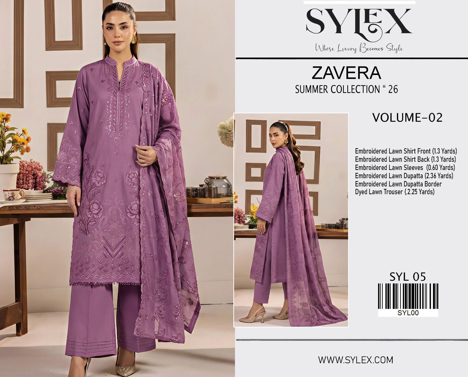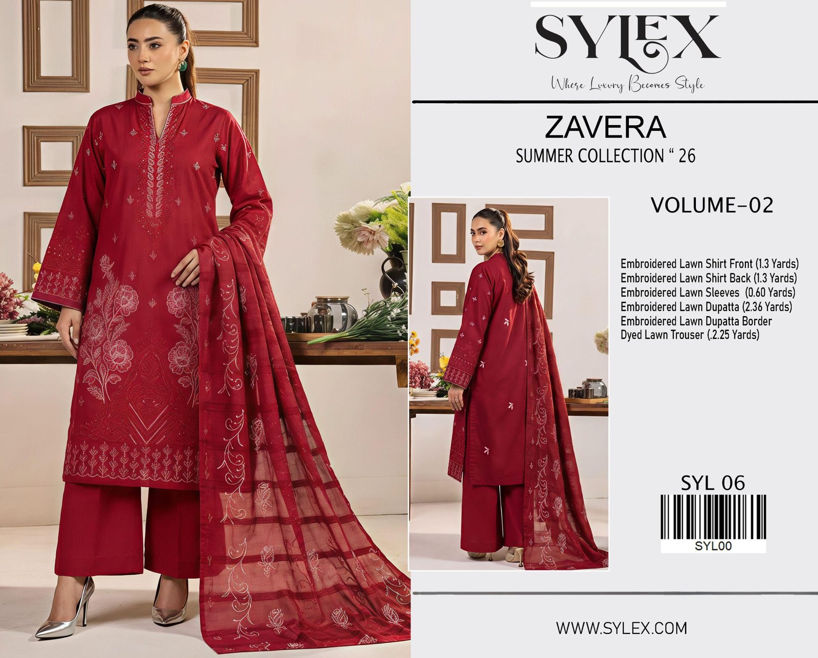 “SYLEX” Premium Dyed Lawn Collection Heavy Embroidered Lawn Suits (BOX 6 SUITS) With Box Packing