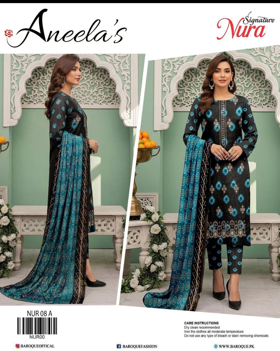 “NURA SIGNATURE” Lawn With Chiffon Dupatta With Patches (BAROQUE)