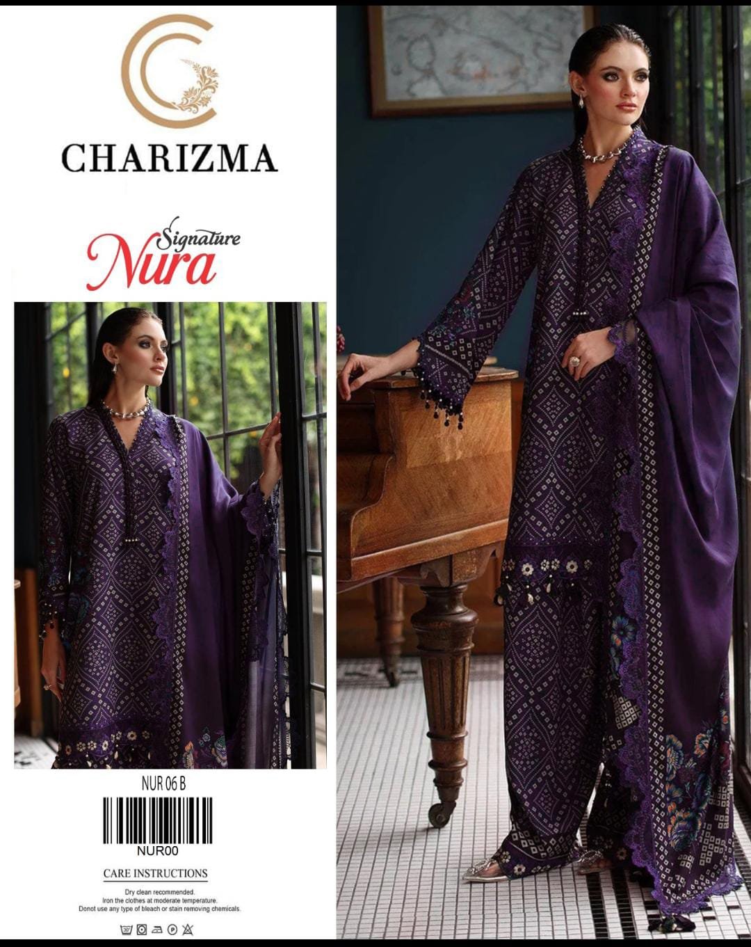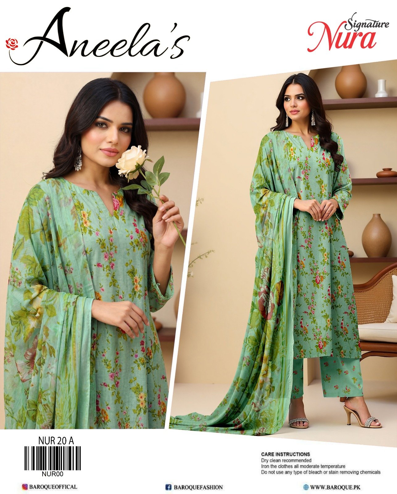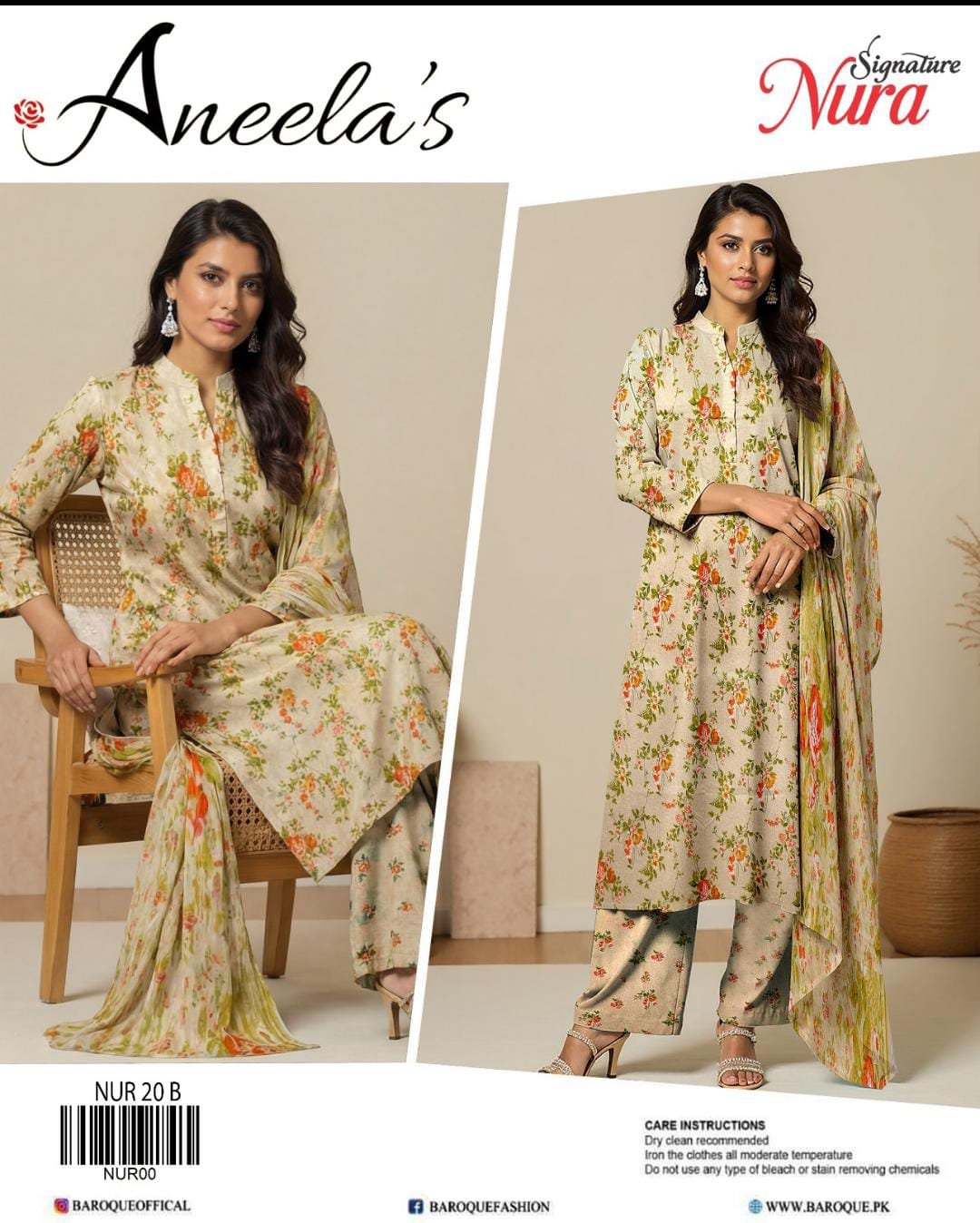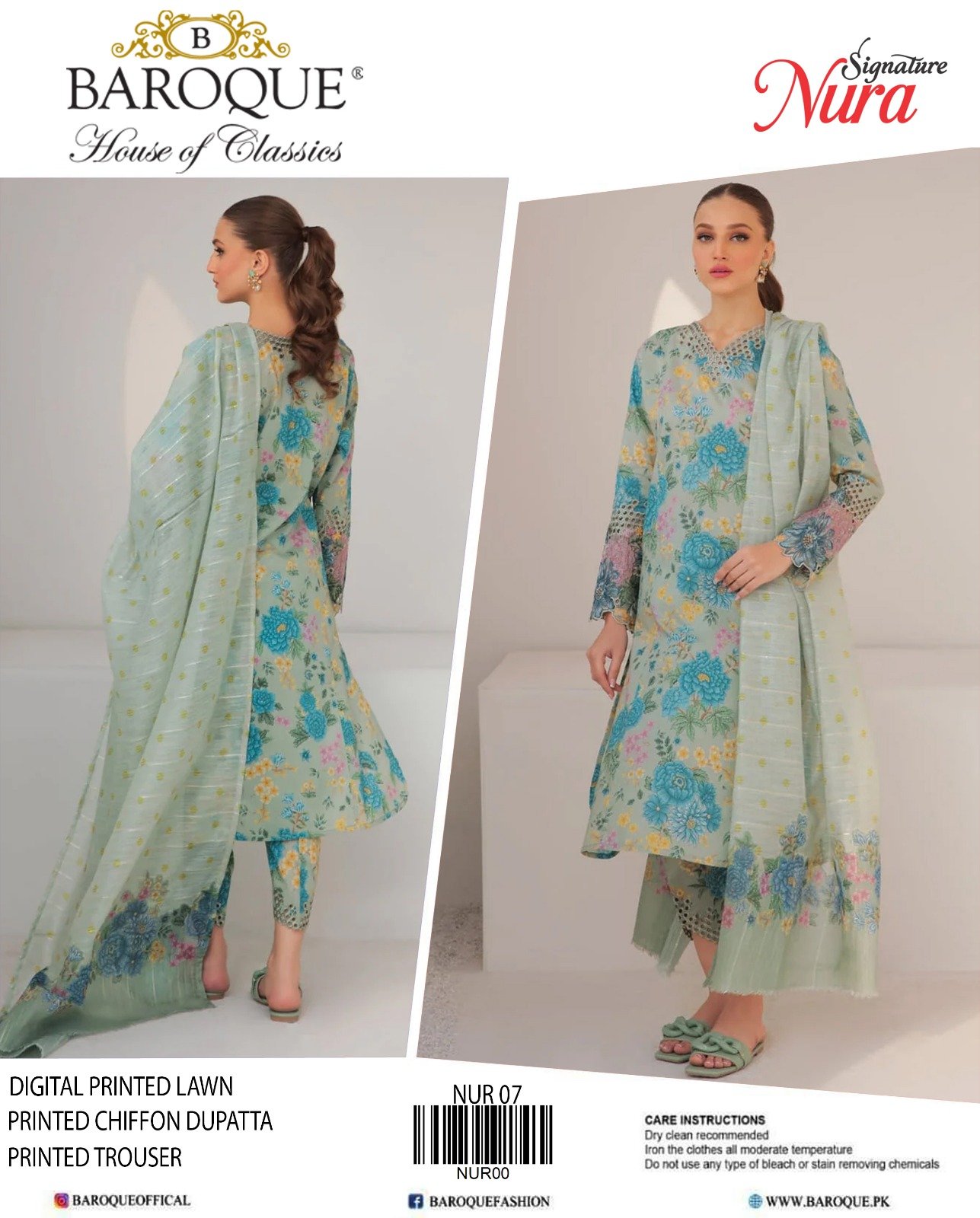 “NURA SIGNATURE” Lawn With Chiffon Dupatta With Patches (BAROQUE)