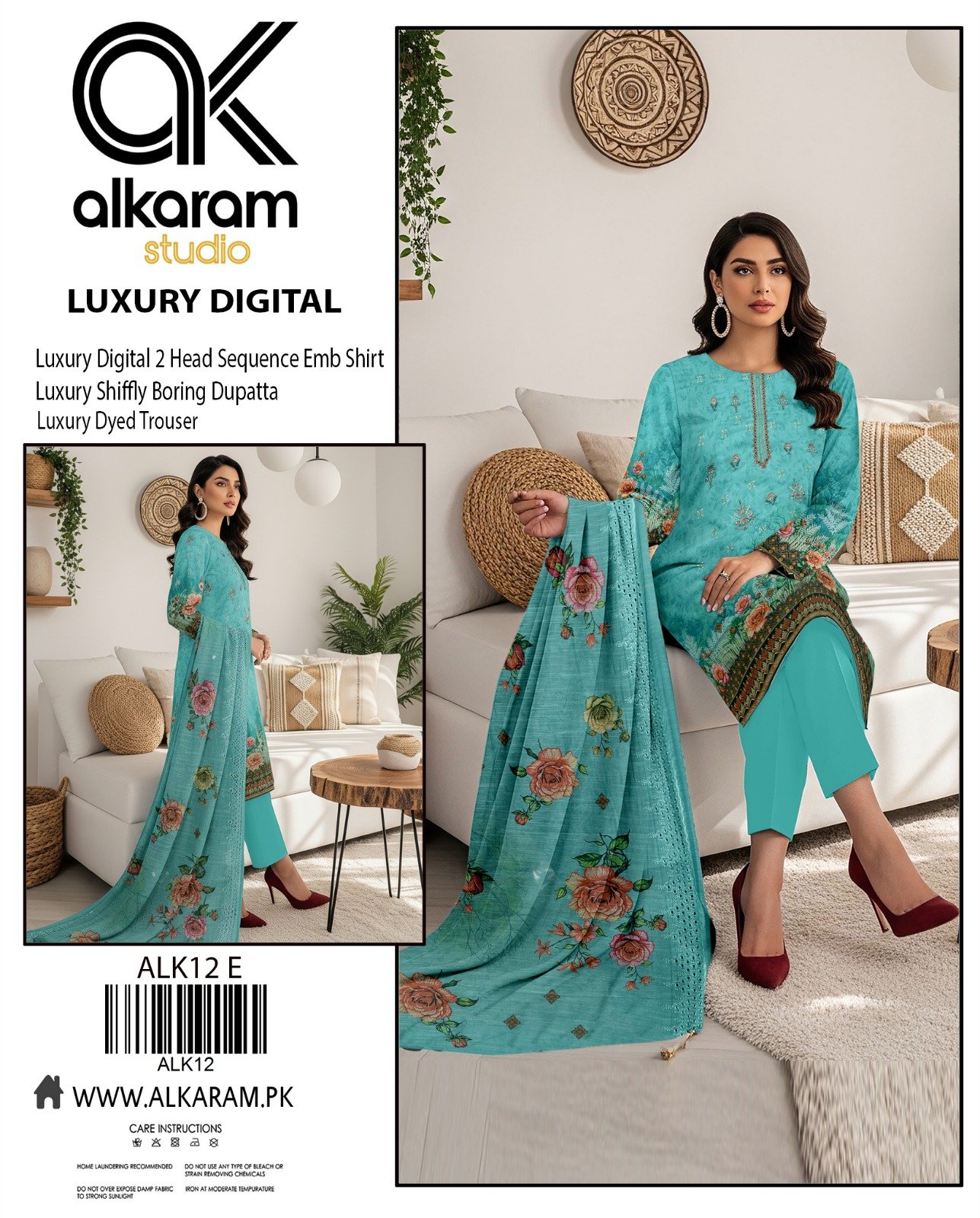 “AL KARAM” Luxury Digital Lawn With Luxury Shiffly Boring Dupatta {Box 9 Suits}