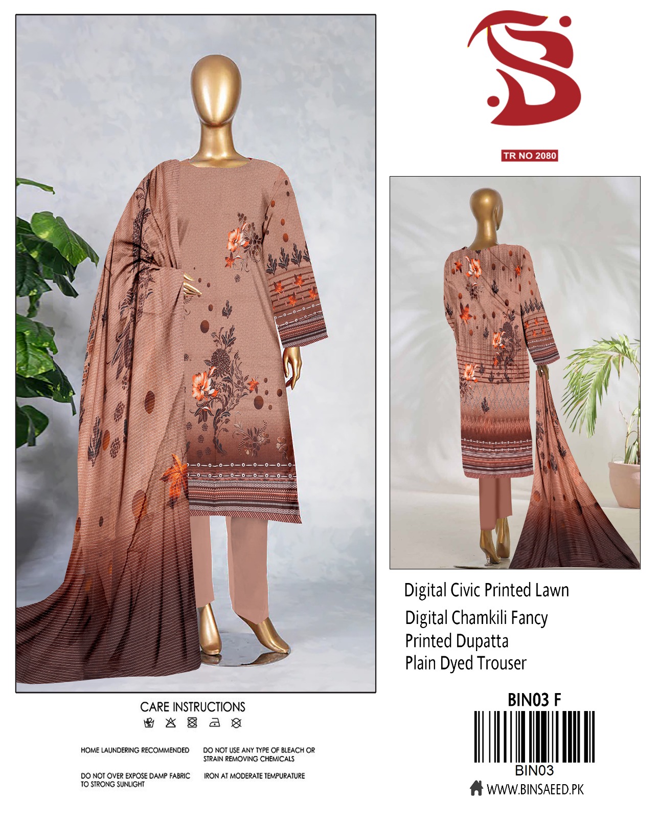 “Bin Saeed” Digital Civic Printed Lawn With Digital Chamkili Fancy Printed Dupatta {Box 10 Suits}