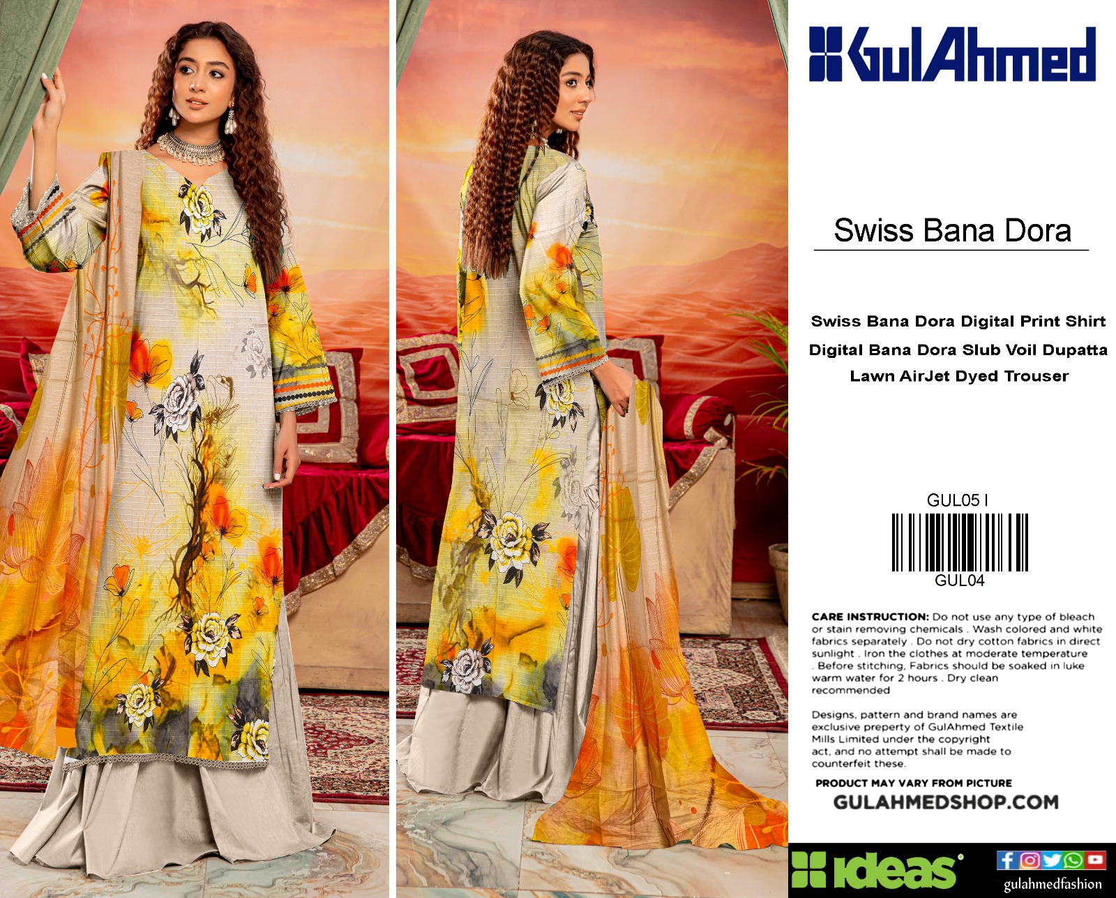 Back & Sleeves: Swiss Bana Dora Digital Printed Lawn.